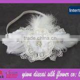 Double Feather and Bead Decorated Elastic Headband Bridal Flower