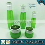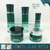 Green Coloured Cosmetic Glass Bottle and Cosmetic Glass Jar
