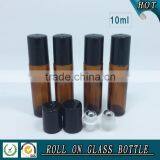 10ML amber glass perfume roll on bottle with silver lid and stainless steel roller ball