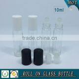 10ML Clear Roll on Glass Bottle With White Plastic Cap and Glass Roller Ball