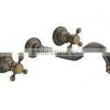 Double Handle 3 Hole Antique Wall-mounted Brass Copper Basin Faucet Tap QH001-22A