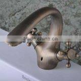 Two Handles Antigue Bronze Solid Brass Basin Faucet QH1808B