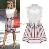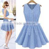2016 Summer Women's Stripe Sleeveless Vest Dress Skirt