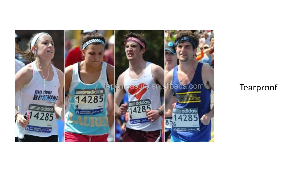 Our bib numbers are printed on Tyvek which is waterproof and tearproof material, our products can be usted for: