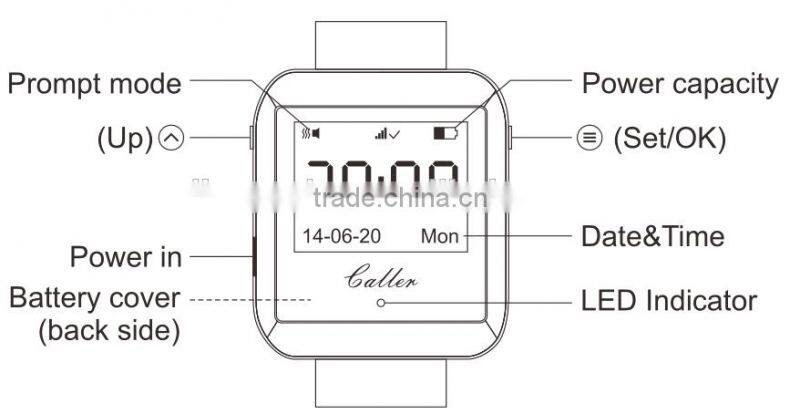 Restaurant Wireless Service Call System With Wrist Watch Pager