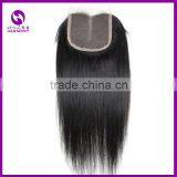 STOCK Silky Straight Natural Black Color Cheap Free Parting Human Hair Lace Closure Bleached Knots With 4x4inch Folded Edge