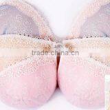 Sexy Girl Wear Soft Bra Pink Lace Piped Sponge Bra