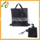 Promotional Black Polyester Foldable Drawstring Shopping Bag