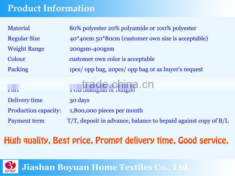 | Feature | Quick-Dry, Other, Quick-Dry, Eco-Friendly | Size | such as 20x20cm, 30x30cm,40x40cm,etc | |
