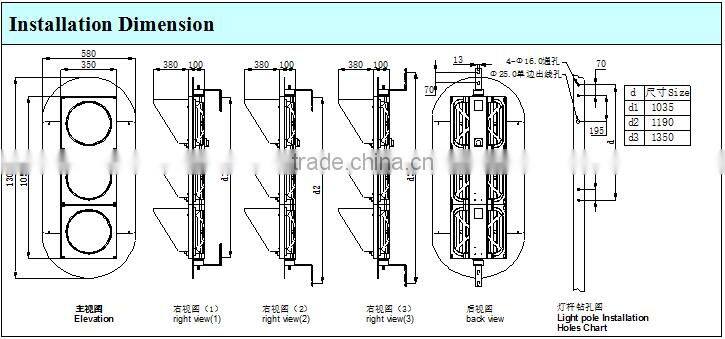 « Red ball: 91 pcs of LED, single brightness: 3500 ~ 5000mcd, wavelength: 625 ± 5nm, L/R/U/D viewing angle: 30 °, power: ≤9W.