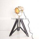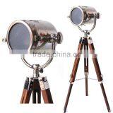 Crome Finishing Vintage Home Decor Floor Nautical Lamp Searchlight Telescopic Tripod Spotlight With Oak Wood Stand