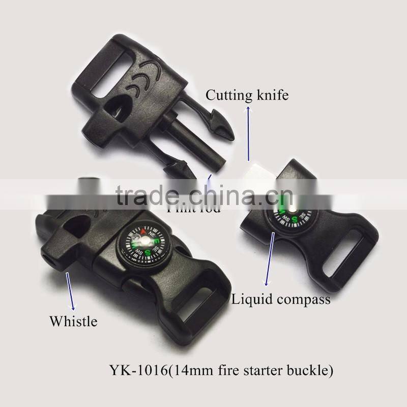 Yukai High Quality Paracord Fire Starter Buckle for 14mm Webbing 1/2" Flint Buckle With Compass