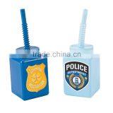 16 Oz. 450ml Hot Sale Fashion Perfect Plastic Square Shaped Police Party Cups With Lids and Straws for Promotional Gifts