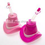 14 Oz. 400ml Top Rated Hot Sale Custom Shaped Plastic Molded Pink Cowgirl Hat Cups With Lids and Straws Party Favors Sipper Cups