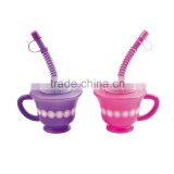 20 Oz. 560ml Fashionable Custom Kids Party Favors Sipper Cups Promotional Plastic Mustache Smile Heart Cups With Lids and Straws