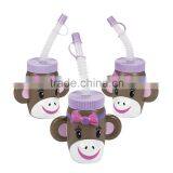7 Oz. 200ml Hot Sale Cool Fun Prefect Promotional Plastic Miss Sock Monkey Molded Cups With Lids and Straws for Party Favors