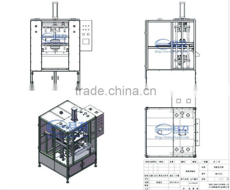 hot plate welding machine is used for welding injection-moulded components which made of PE,PP,Nylon,ABS,Acrylic. Hot plate mould is made by CNC engraving. Consistent high-pressure hermetic seals, PLC controlled circuit systems,Elminates consumables.,Application :car lamps,radiators and vessels | |