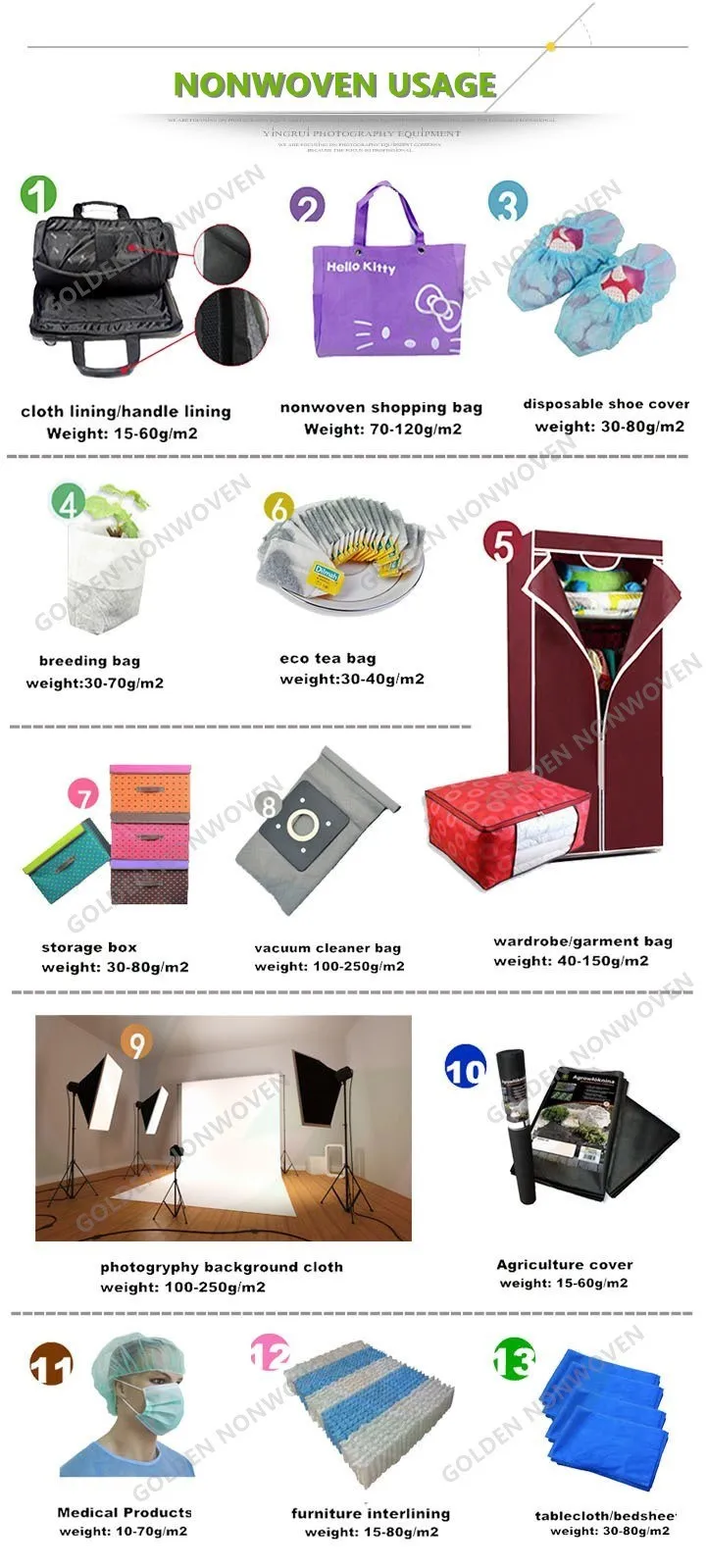 | Place of Origin | Fujian, China | Brand Name | GOLDEN NONWOVEN, non woven fabric, pp nonwoven fabric,non woven fabric roll | |