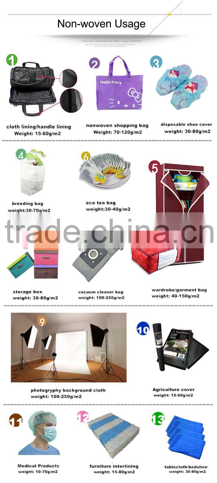 50~120gsm for home textile: such as wardrobe, storage box,bed sheets, table cloth, sofa upholstery, home furnishing, handbag lining, mattresses,wall and floor cover,