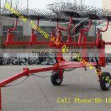 The series of hay tedder with rake and dry machine combination is consist of rack,rotary disk,bracket,regulation handle,wheel and so on,it can be rake,ted and revert.The machine use cam structure to invert the grass by one operation.