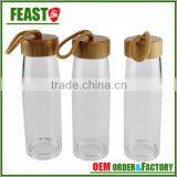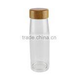 Eco-Friendly Double Wall Portable Glass Water Bottle With Bamboo Screw Lid Cap