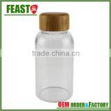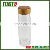 Food Grade Office Glass Water Bottle 400ml With Bamboo Lid