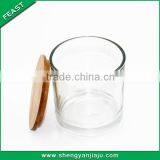 350ml Wholesale Round Clear Candle Holders Glass With Bamboo Lid