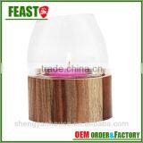 2015 New Design Glass Candle Holder Decorative Candle Jar With Wood Stand