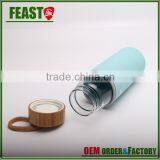 Custom Portable Real Borosilicate Glass Water Bottle With Wooden Lid