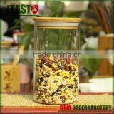 Hot Sale Bamboo Lid Candy Glass Jar in Pretty Design