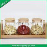 2015 New Style Glass Jar With Lid Hot Selling High Borosilicate Glass Jar High Quality Gass Jar Set With Bamboo Rack