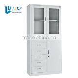 Metal Storage Cupboard, With 2 Drawers,glass,sliding Door