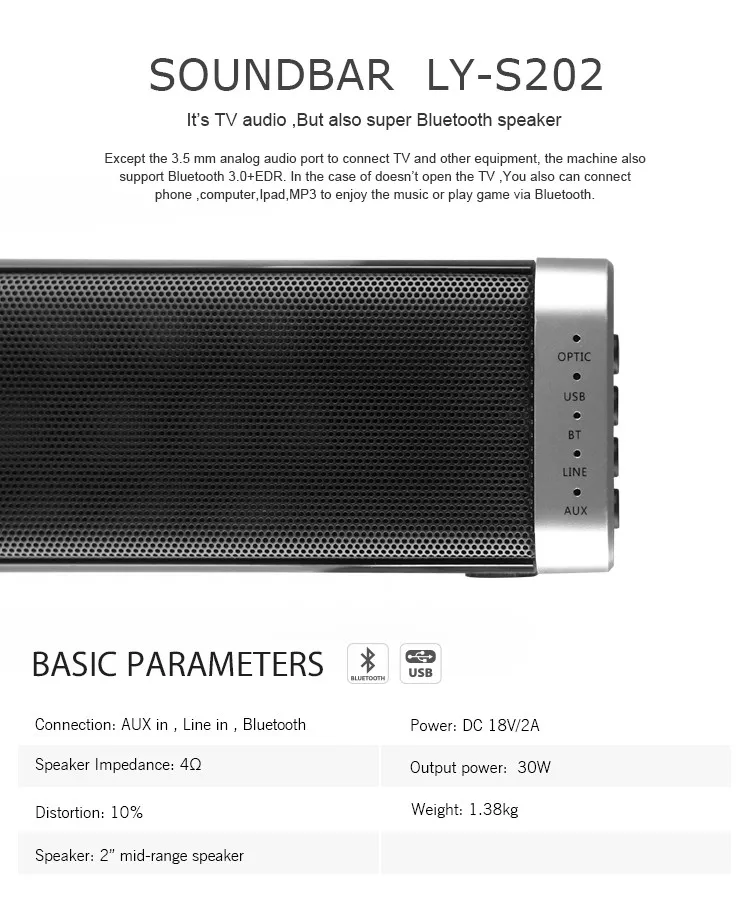 2016 New and Cheapest 15W*2 2.0 Sound Bar Bluetooth Speaker With Active Sound System Quality Choice