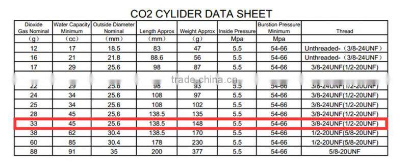 CE Certificated 33g CO2 Cartridge for Inflatable Life Jacket
