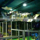 From the space perspective, this is a huge playground, although it area is limited, only 110 square meters, the longest part of 14.64 meters, the width of 12.2 meters. But highly amazing, foot have 12.2 meters, make its volume is very big. And it's the space theme amusement park, due to the huge volume, so it has enough space to set such as Spiral Slide, Vertical elevator, Triangle elevator, Vertical elevator with Arc_shaped, Standard Moon Walk, Soft deck, adventure bridge, T - tube, Half Sphere with Window, Theming decoration panel, Floor pads, Roof liner, safety net, Palm, colorful draps, Foam pad column, Steel tube, Web Crawl, Web Desk, Rocket, 90 Elbow with Window, Junction Cube, Roll Run etc. Facilities.