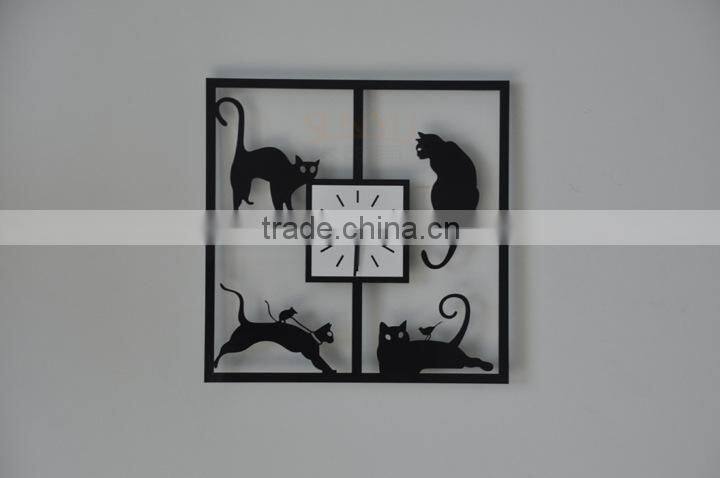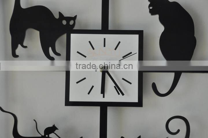 Home > Products > 08. Wall Clock > New Fashion Customizable Four Cats Black Quadrate Acrylic Wall Clock Quality Choice