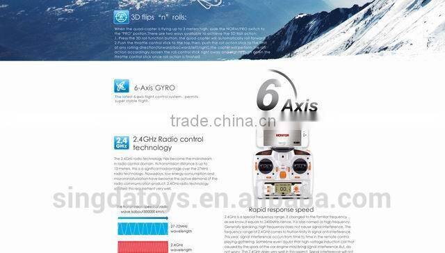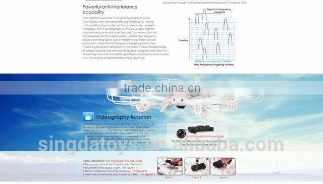 2.4G technology adopted for anti-interference,even more than one quadcopter is flying at the same time they will not interfere with each other.