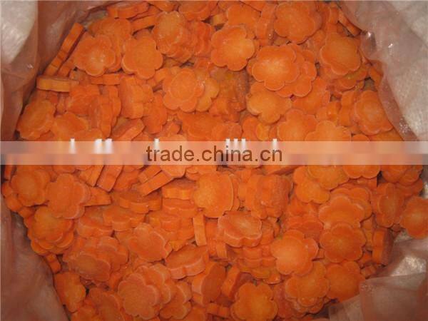 4.IQF carrot plum blossom slices: size:thickness:6-8mm,8-10mm,Length 25-55mm,10kg/carton, or packed according clients requirments;