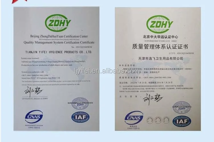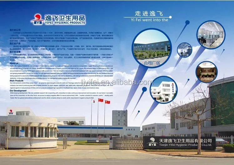 Established in 2006, Tianjin Yifei Hygienic Products Co., Ltd. is a professional manufacturer and exporter that is concerned with the design, development and production of baby and adult diapers and underpads.