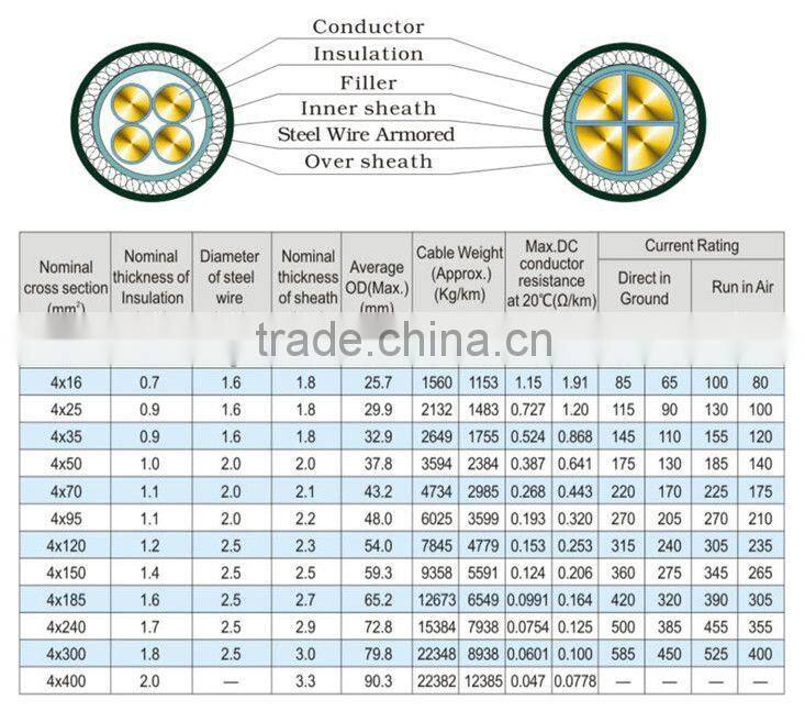 China Manufacturing Product 4 Core Cable Cable Clamp With Rubber Bare Tin-plated Copper Wire