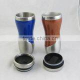 16oz/ 450ml Plastic Travel Mug, Stainless Steel Travel Mug, Wooden Color, Promotional, NEW