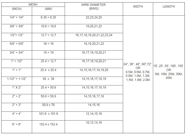 Common sizes of welded wire mesh in rolI