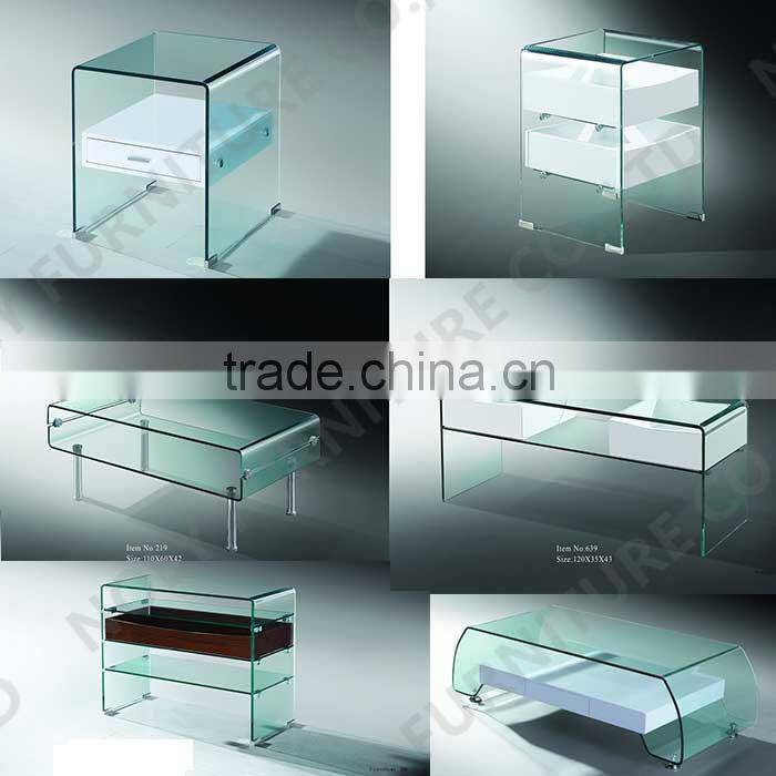 Home goods furniture CT-083 bent glass coffee table with drawer