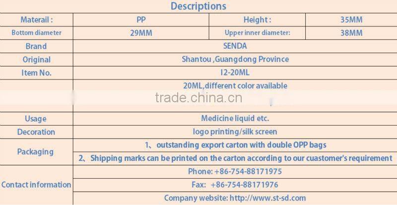 Hot Sale 20ml Plastic Cups With Scale pp Measuring Cup
