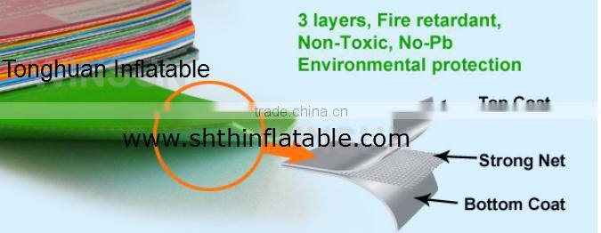 The PVC Material is 3 layers, which is Eco-friendly, Waterproof, Yarn density 500Dx500Dx18x22, Tensile strength more than 2000N/50mm, Peel strength more than 80N/50mm, Tear strength more than 200N.