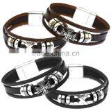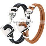 Wholesale Weave Leather Cuff Wrap Wristband Bangle Skull Anchor Clasp Bracelet