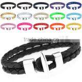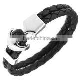 Punk Style Fashion Jewelry Metal Clasp Bangle Braid PU Leather Charm Bracelet