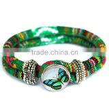 Handmade Women's Glass Gem Butterfly Cuff Bangle Wristband Snap Button Bracelet