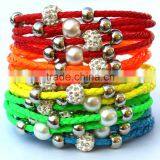 Cuff Punk Shamballa Style Leather Magnetic Buckle Rhinestone Charm Bracelet