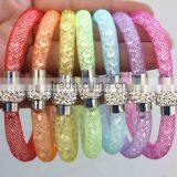 PRETTY STARDUST MESH MAGNETIC BANGLE BRACELET With RHINESTONE BEADS CRYSTAL 7.8"